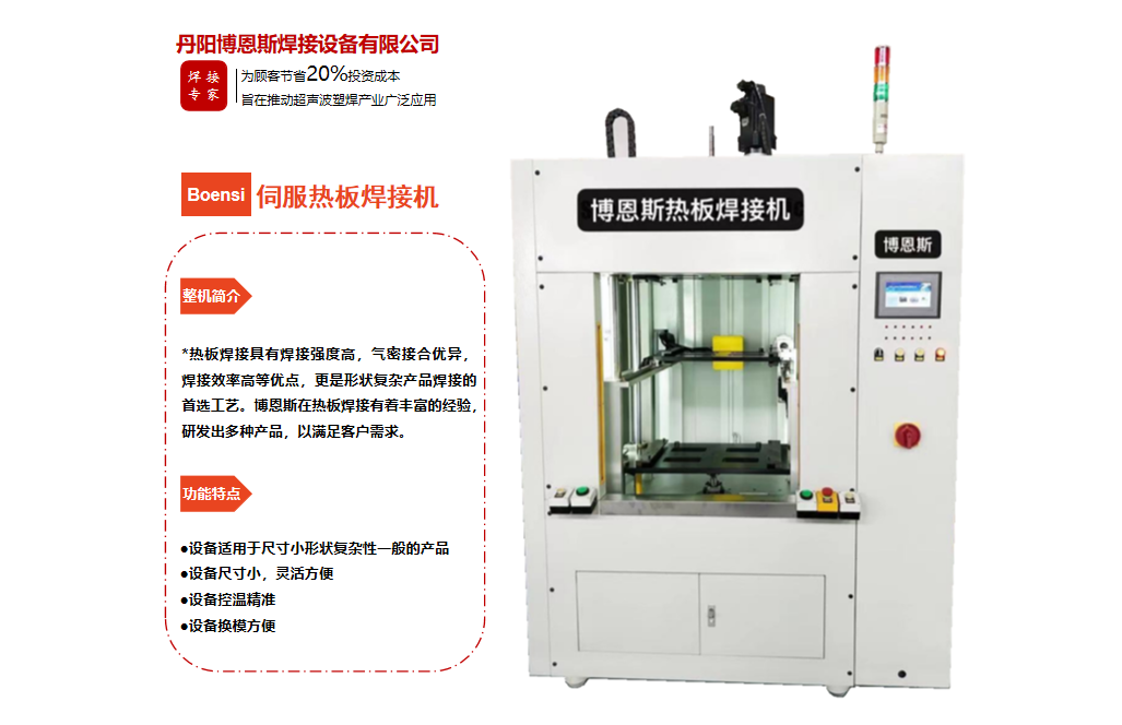 丹陽博恩斯焊接設備有限公司是塑料焊接領域集研發設計、生產制造、銷售服務為一體的企業。公司自成立以來堅持“以人為本”的理念,組織了一支強大的技術研發團隊,攜多年來積累的豐富經驗,并結合國際先進塑料焊接技術,根據市場需要,不斷開發具有核心競爭力的新產品。公司具有很強的非標機械研發、設計、生產能力,可為廣大客戶定制各類專用機械設備。公司設計生產的塑料焊接設備已廣泛應用于汽車、電子、家電、醫療器械、無紡布...